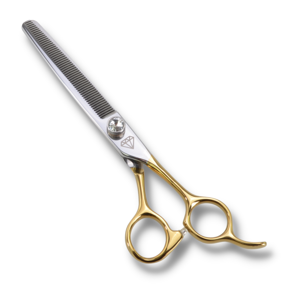 Diamond Scissors offers fantastic 6.5″ 55-tooth thinning shears for grooming dogs. Beautifully crafted from Japanese 440c stainless steel.