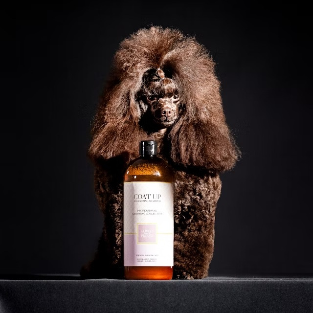 Coat Up Shampoo is specially formulated to add volume and body to the coat, making it perfectfor breeds that require extra lift and fullness. Its lightweight yet powerful formula boosts volumewithout weighing down the coat, giving it a naturally full and healthy appearance. Infused withorganic aloe vera and organic argan oil for hydration and nourishment, the shampoo also featuresvolume-boosting protein systems and vegan amino acids to strengthen and support the coatstructure. Antioxidants and Vitamin E work to protect and nourish the coat, leaving it vibrant andrevitalized. This shampoo is ideal for creating a fuller, more voluminous look that enhances thecoat’s natural texture and lift. Perfect for pets that need that extra body and bounce.Application: Shake well before use. Moisten the coat surface with lukewarm water. Diluteshampoo up to 10:1. Massage thoroughly with the diluted shampoo and rinse. Repeat thetreatment and then dry well.