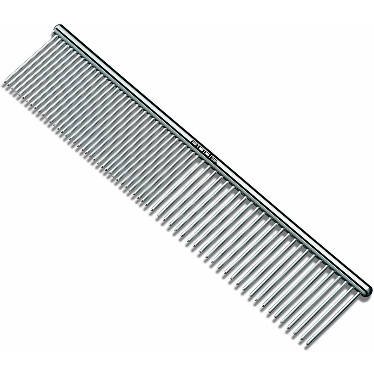 The Andis 7.5-inch steel pet grooming comb is perfect for both cats and dogs of all sizes. This versatile tool effectively eliminates tangles, mats, loose hair, and dirt while also providing a gentle massage to the skin and hair follicles. It’s an excellent choice for those final touches and adding some fluff to your pet’s coat.