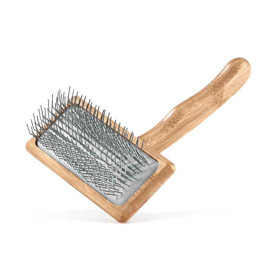 Bamboo brush with rubber air-cushion system which allows its pins of medium rigidity to conform to the surface to be brushed and achieves greater coverage. Exclusive ergonomic handle for better grip, efficiently saving on effort while brushing.