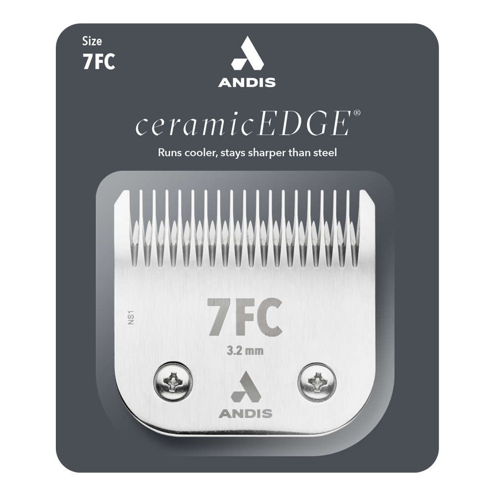The Andis CeramicEdge #7FC ceramic blade is designed for precision trimming of fur to a length of 3,2mm. It fits many clipper models, including Andis, Moser 1245, Oster A5, and others.