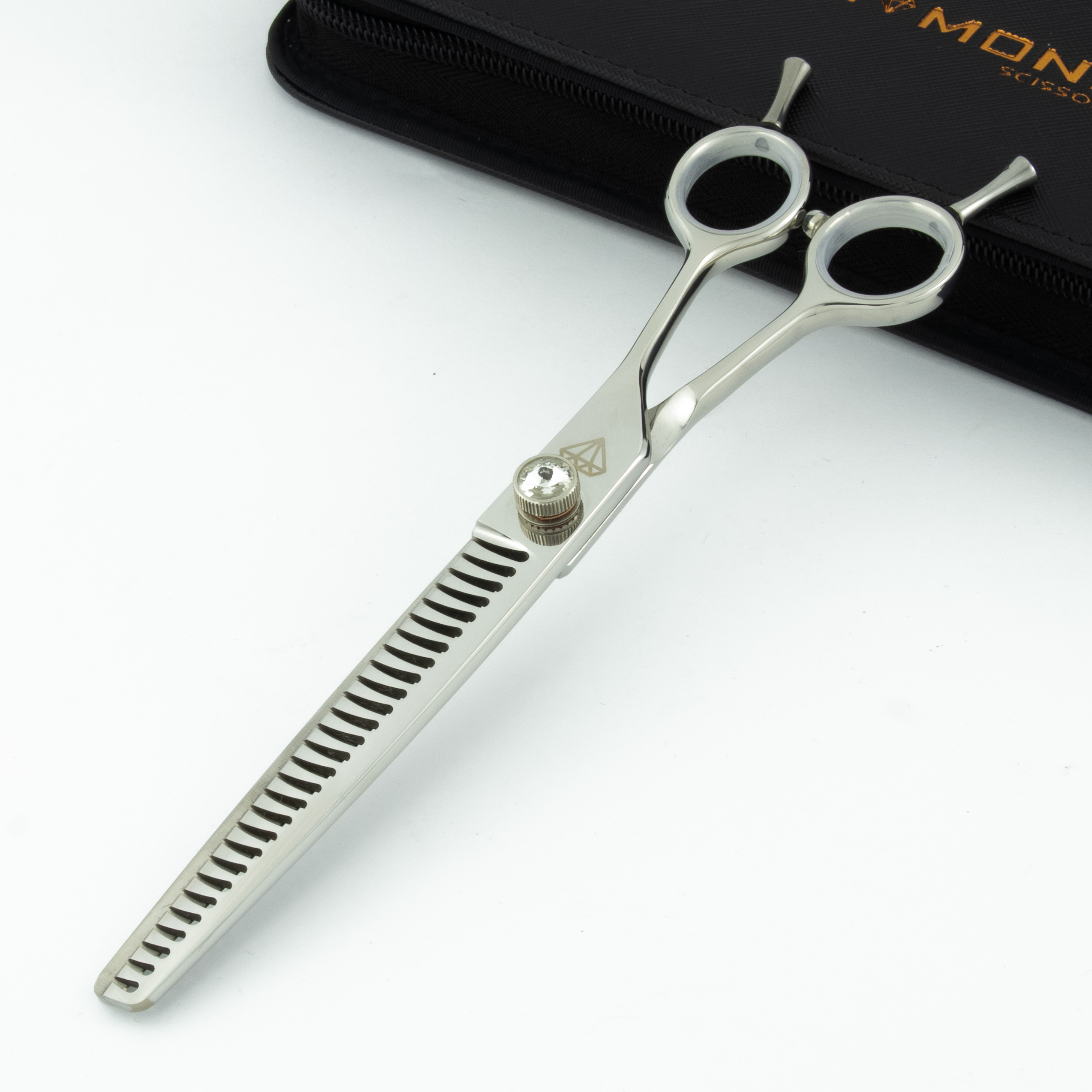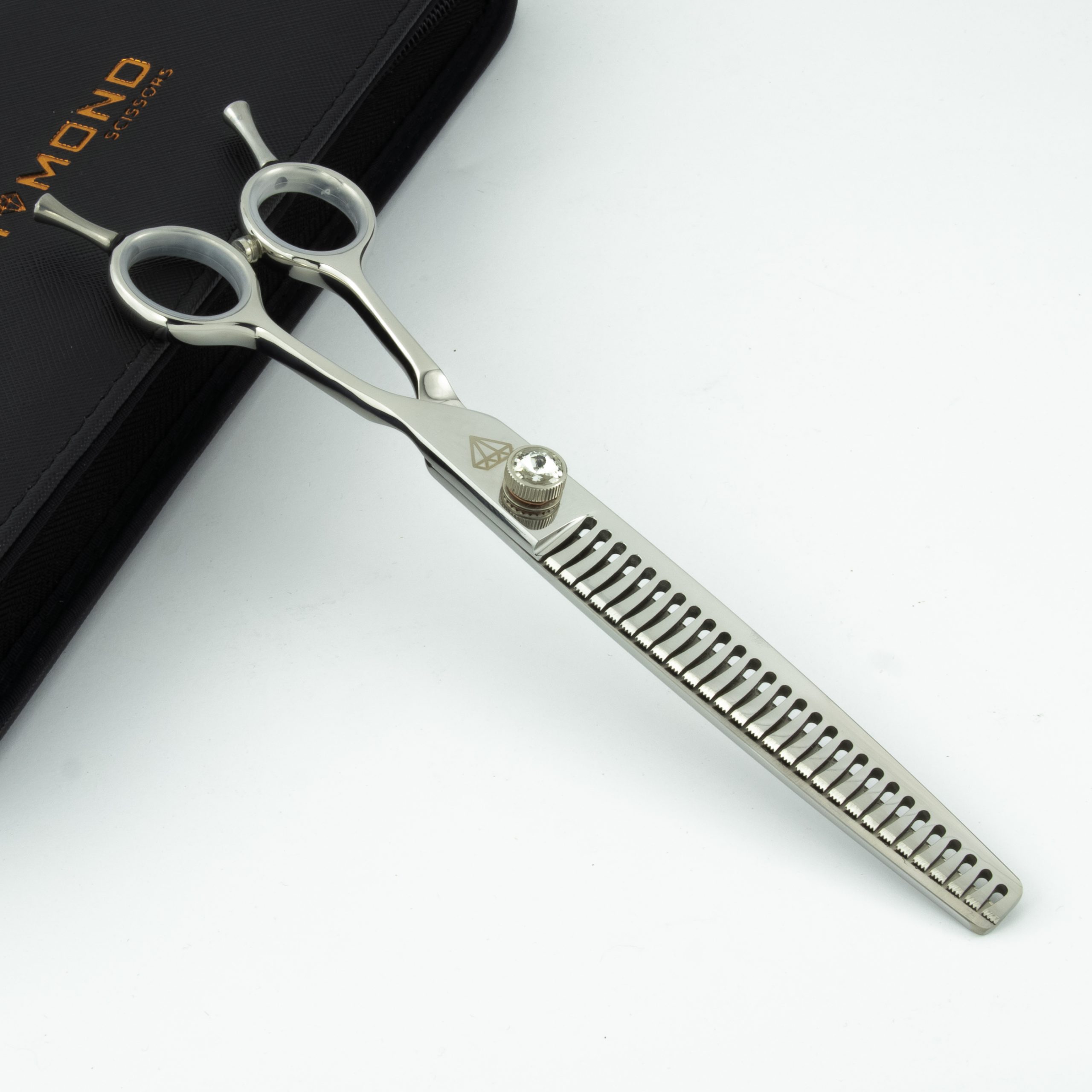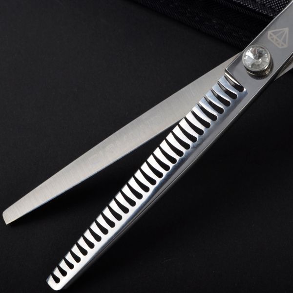 Diamond Scissors offers fantastic 7.5″ 28-tooth chunkers for dog grooming. Beautifully crafted from hardened Japanese stainless steel 440C.