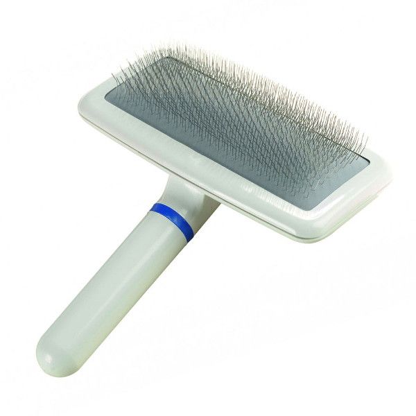 A brushing tool for detangling and removing mats, featuring a durable plastic housing and a soft cushion with curved pins on the ends, allowing for gentle brushing of the dog and avoiding irritation to the coat. It works exceptionally well for detangling and mat removal, and is suitable for removing dead undercoat.