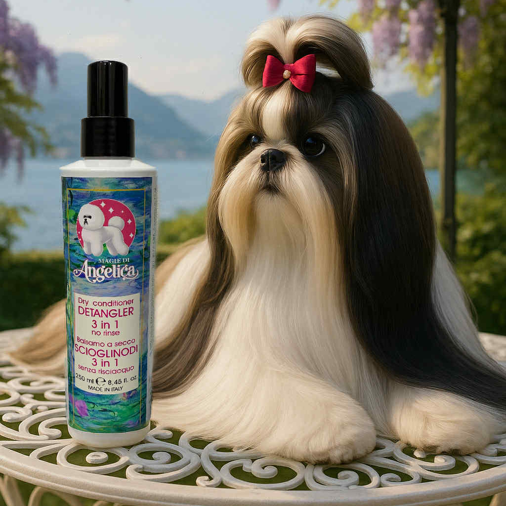 Our formula, instead, works deeply and effectively. I selected ingredients such as jojoba oil, wheat germ oil, and pollen extract, which nourish and protect the hair shaft, while honey helps retain moisture. Everything is enhanced by gentle, biodegradable conditioning agents, which immediately make the coat softer, shinier, and easier to comb – but without masking or sealing.
