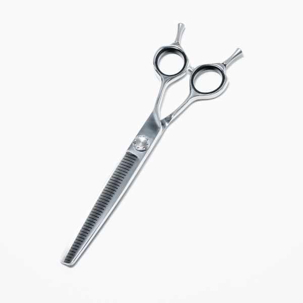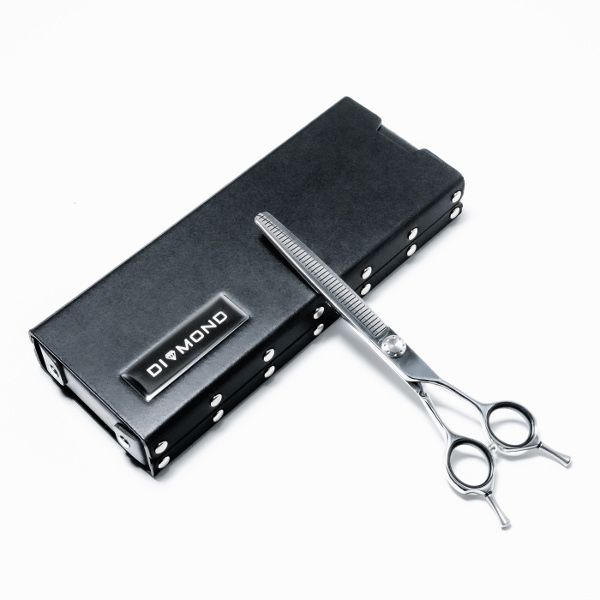 Diamond Scissors offers fantastic 7″ 40-tooth thinning scissors for dog grooming. Beautifully crafted from Japanese 440C stainless steel. They feature two finger rests that are detachable. The screw for scissor adjustment is not protruding and does not interfere during work.